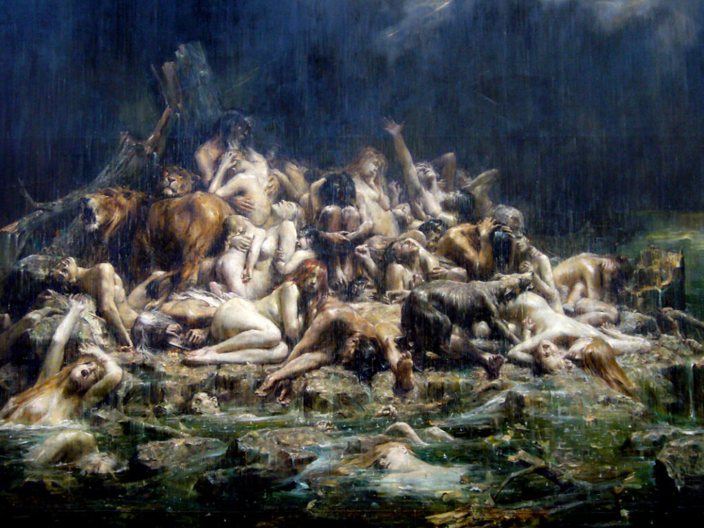 Si le mythe du déluge, une inondation catastrophique au point de détruire l’humanité ou presque, est présent dans de nombreuses cultures, il est surtout connu chez nous par sa version présente dans le récit biblique de le Genèse. Dieu, en colère contre sa création, décide de tout noyer à l’exception de Noé, de sa famille et d’un couple de chaque espèce animale. Tous trouvent refuge dans une arche géante et survivent finalement pour repeupler la terre après la descente des eaux.